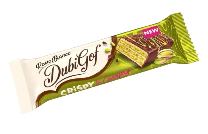 СоставШоколадная глазурь: сахар, какао масло, какао тертое, растительное масло (подсолнечное), сухая молочная сыворотка, молоко сухое обезжиренное, соль, натуральный ароматизатор ванилин, начинка со вкусом фисташки (52%): сахар, растительное масло (подсолнечное),сухая молочная сыворотка, эмульгатор (подсолнечный лецитин), ароматизаторы натуральные фисташка, ваниль, кадайф (пшеничная мука(содержит глютен), вода, фисташки, эмульгаторы (подсолнечный лецитин, соевый лецитин), кукурузный крахмал, соль, ароматизаторы натуральные ваниль, фисташка, молоко, красители натуральные (медные комплексы хлорофиллов, каротины), разрыхлители (бикарбонат натрия, бикарбонат аммония), вафли: пшеничная мука (содержит глютен), сахар, растительное масло (подсолнечное), сухая молочная сыворотка, крахмал кукурузный, разрыхлитель (гидрокарбонат натрия, бикарбонат аммония), эмульгатор (подсолнечный лецитин), соль,ароматизатор натуральный ваниль.
