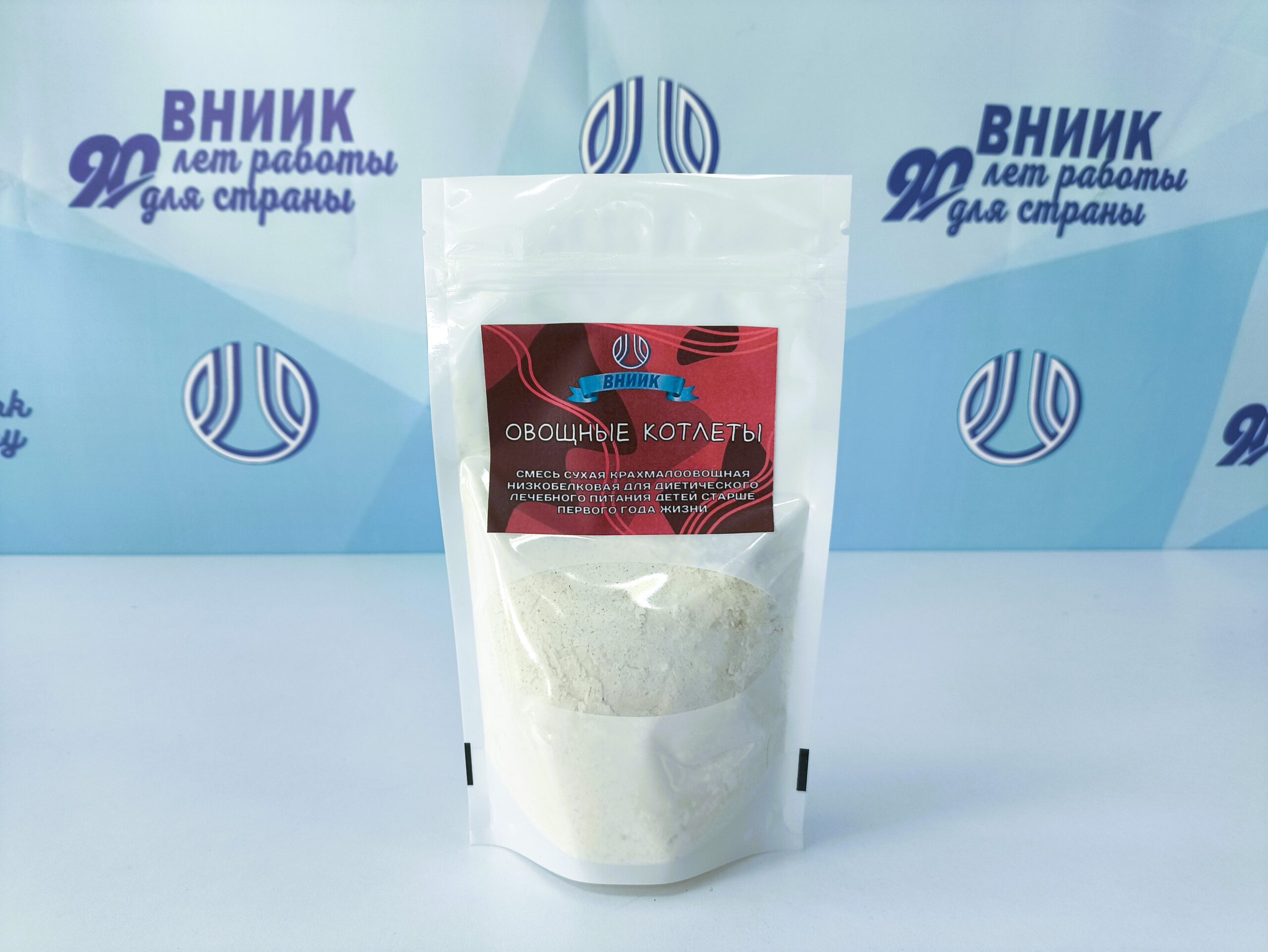 Ингредиентный состав продукта: смесь сухая низкобелковая крахмальная обогащенная «Детка» с инулином (крахмал кукурузный – 82%, крахмал набухающий, сухой яичный желтой/меланж/ инулин, кислота лимонная пищевая, калий виннокислый, натрий двууглекислый) – 82,2%, овощные порошки («картошечка», «морковь», «лук репчатый», «тыква», «петрушка») – 17,4%, соль поваренная пищевая – 0,4%.ТУ 9197-127-00334735-15.